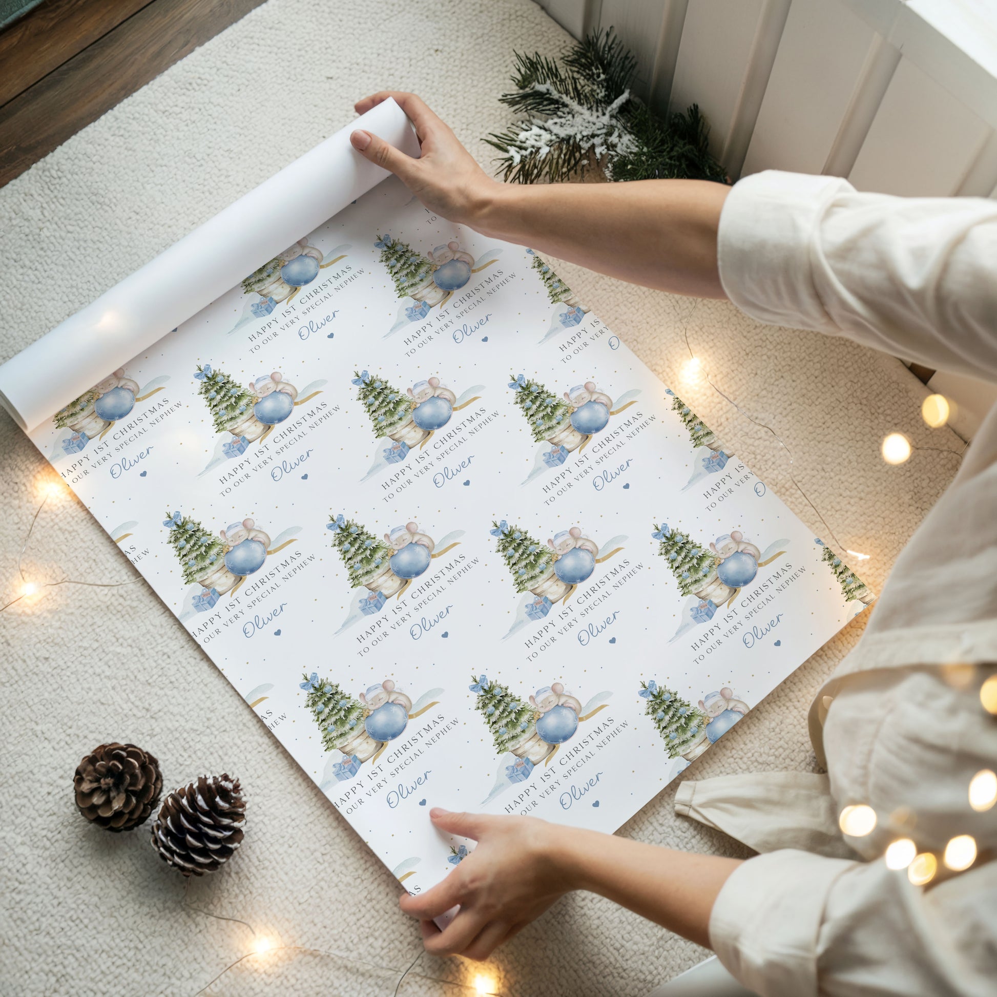 Personalised Baby Boy's Blue Mouse First Christmas Card